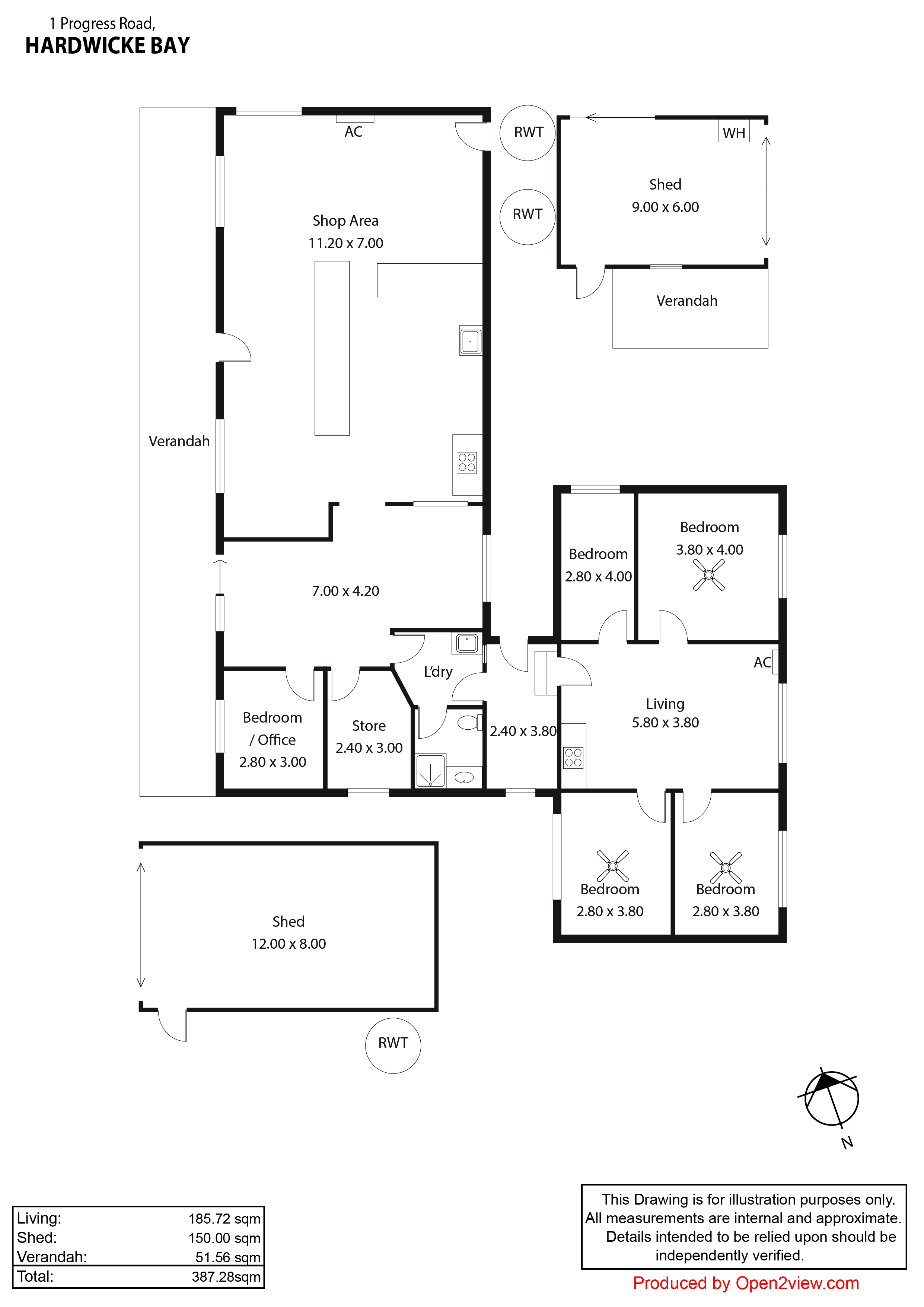 The existing house is modest with central living/kitchen area with 4 bedrooms attached. There's loads of room for expansion in this space should you wish to create more space.